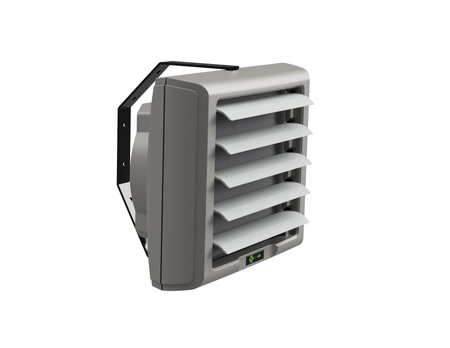 Następnie ciepło jest wydmuchiwane przez wylot wentylatorem. Gdy gorąca woda jest odłączona, nagrzewnica działa jak aparat wentylacyjny, mieszając powietrze w pomieszczeniu.